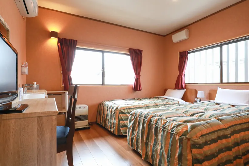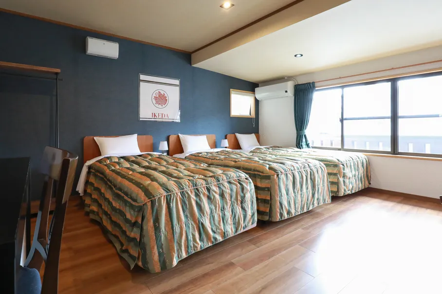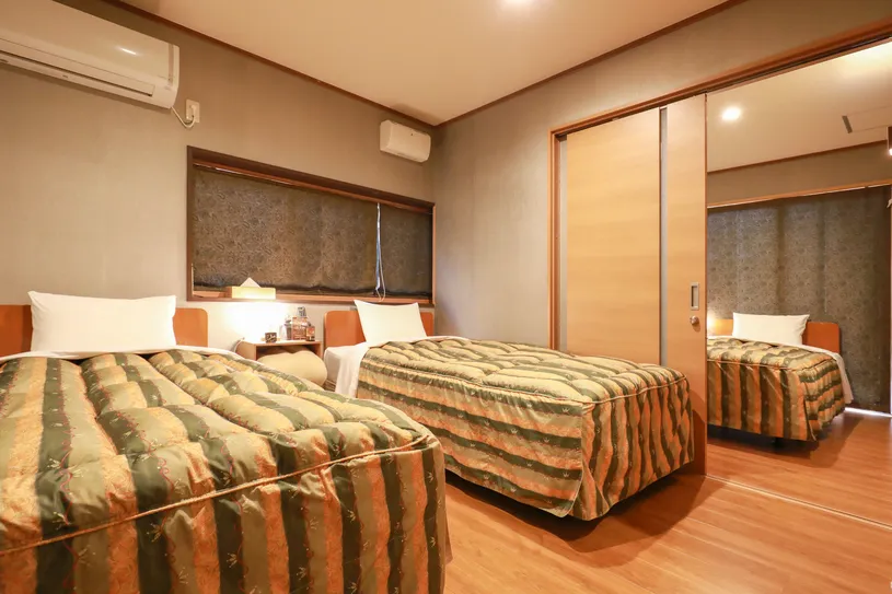 トリプルベッドルーム お部屋は階段を利用しての2階になります  蔵INN家紋の2階のお部屋は玄関が他の2階のお部屋と共用となります(各お部屋には鍵付扉)